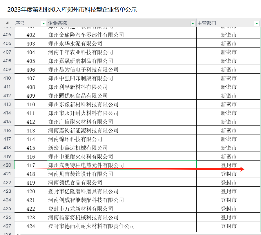 郑州科技型企业是指在郑州市行政区域内依法登记注册,依托一定数量的科技人员从事科学技术研究开发活动,取得自主知识产权并将其转化为高新技术产品或服务,从而实现可持续发展的企业。其核心特征包括技术创新驱动、知识产权转化和可持续发展能力。是区域创新体系的重要主体,以技术创新和知识产权转化为核心。 入库郑州市科技型企业,是郑州嵩明特种电热元件有限公司进行后续高新技术企业认定、研发费用加计扣除的必要条件,同时也是对郑州嵩明特种电热元件有限公司的科技创新能力、技术研发能力、专业化水平以及未来发展潜力的高度认可。未来,郑州嵩明特种电热元件有限公司在立足自身发展的同时还将致力于加强科技型企业的培育工作,不断加大对技术研发的投入及科技型人才的培养,以科技创新推动产业创新,以科技生产力引领企业高质量发展,助力公司高速发展。 声明:此篇为集团原创文章,转载请标明出处链接:http://zzsmdr.com/sys-nd/11.html